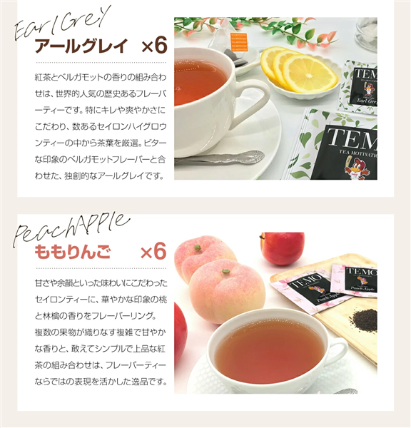 茶葉2.5g (アールグレイ、ピーチアップル) 3g(ダージリン、アッサム) ×4種22ティーバッグ(個包装)