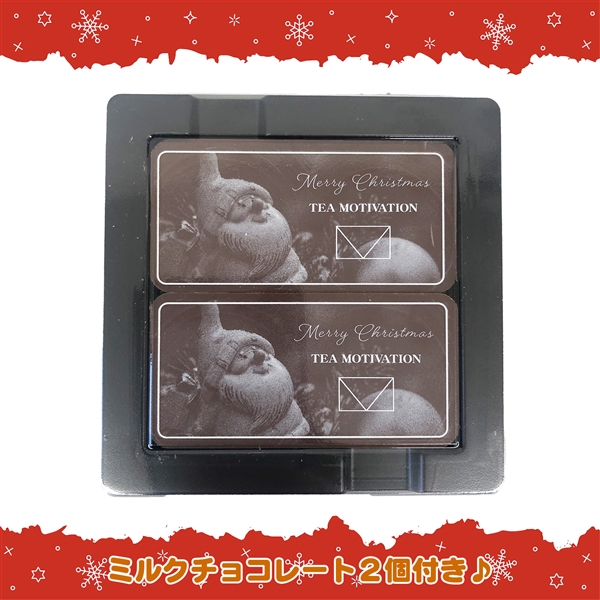 さらに、紅茶ブランドのロゴと可愛らしいサンタのイラストがデザインされた、特別なパッケージに包まれたチョコレートを2個お付けしました。