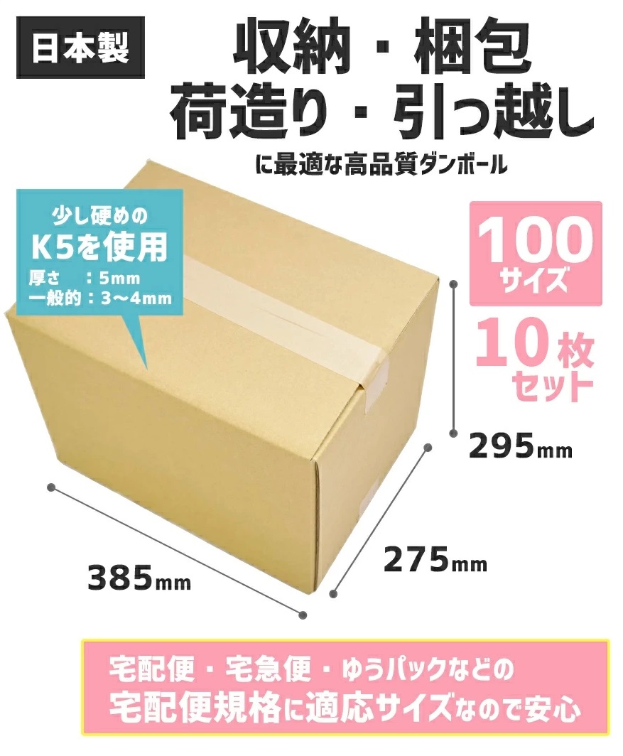 引っ越しや宅配等に使いやすい、宅配便100サイズ対応の段ボールです。