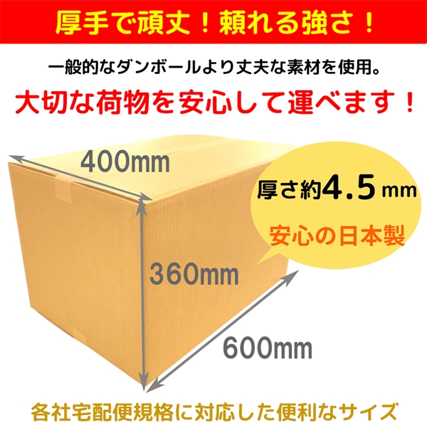さまざまな場面で扱いやすく活用できて汎用性の高い大きめサイズのダンボールです。