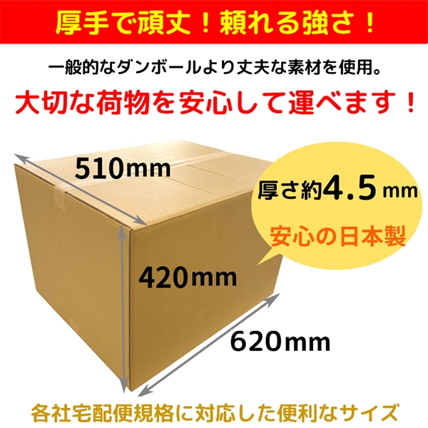 容量を必要とするさまざまなシーンで活用いただけるダンボールです。