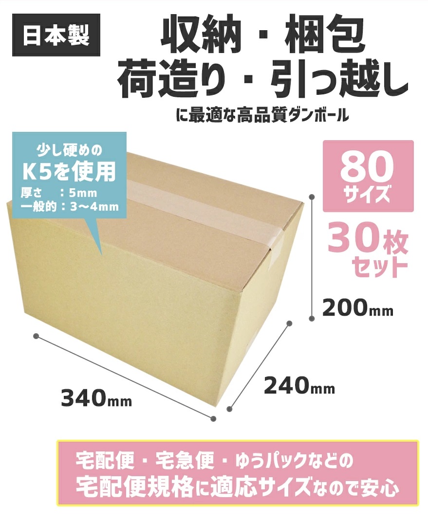 梱包や宅配等に使いやすい、宅配便80サイズ対応の段ボールです。