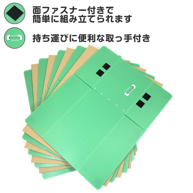 タチバナ産業 折りたたみ式プラダン製収納 BOX 5枚セット (グリーン) 53cm×38cm×33cm 取っ手付き 薄型 折りたたみ マジックテープ 収納上手 書類整理 箱 テレワーク 蓋付き 在宅避難 会社 オフィス 梱包 樹脂製