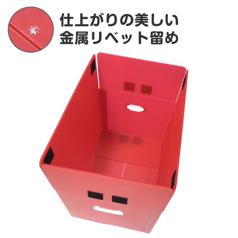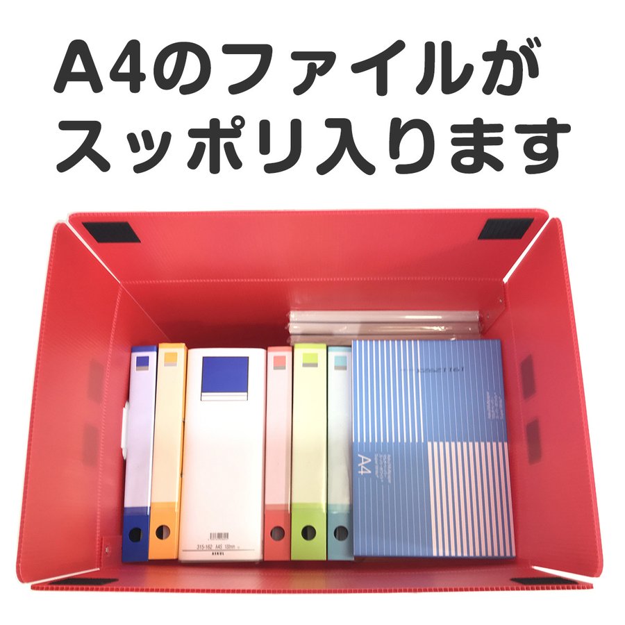 タチバナ産業 折りたたみ式プラダン製収納 BOX 3枚セット (レッド) 53cm×38cm×33cm 取っ手付き 薄型 折りたたみ マジックテープ 収納上手 書類整理 箱 テレワーク 蓋付き 在宅避難 会社 オフィス 梱包 樹脂製