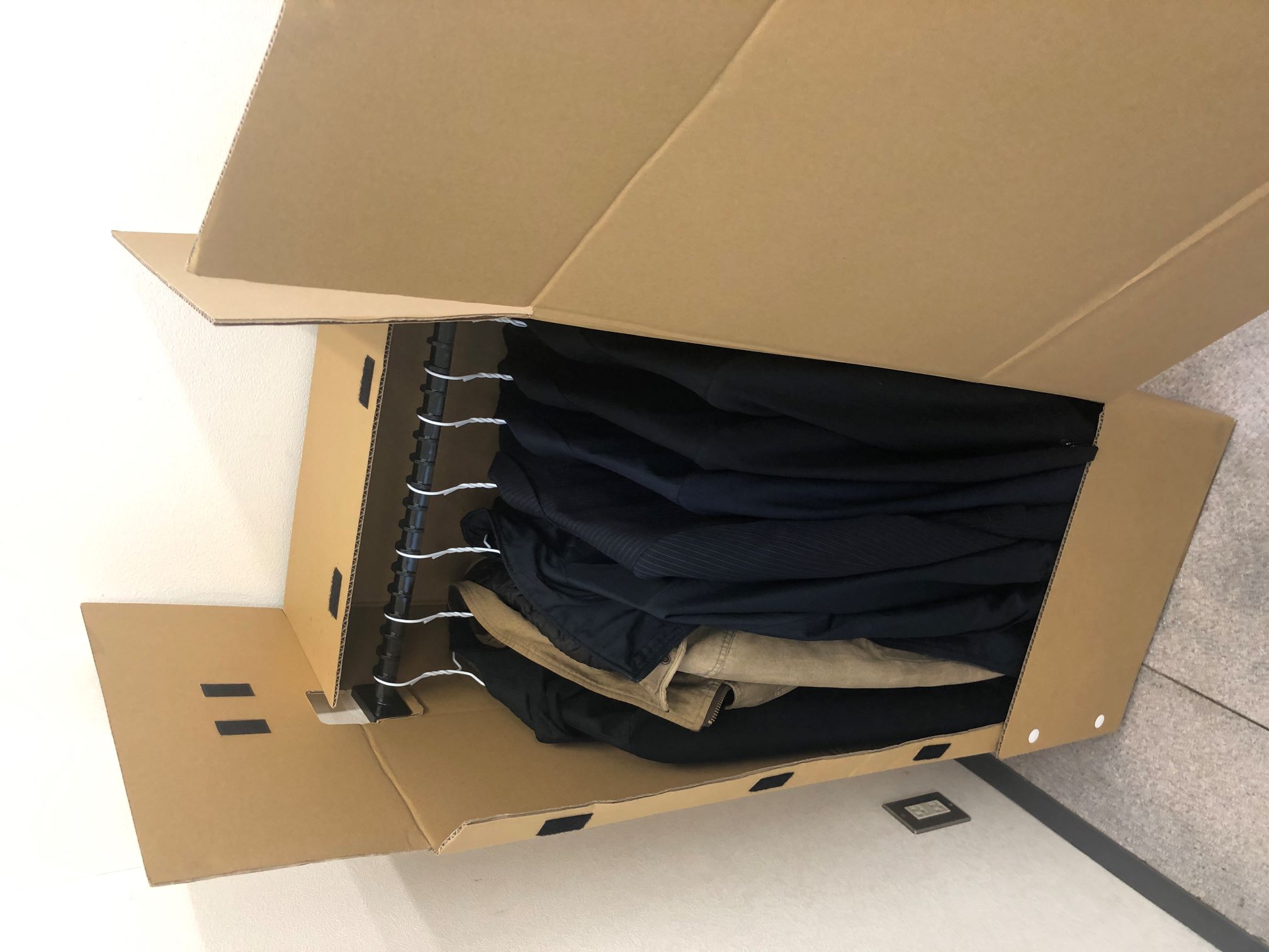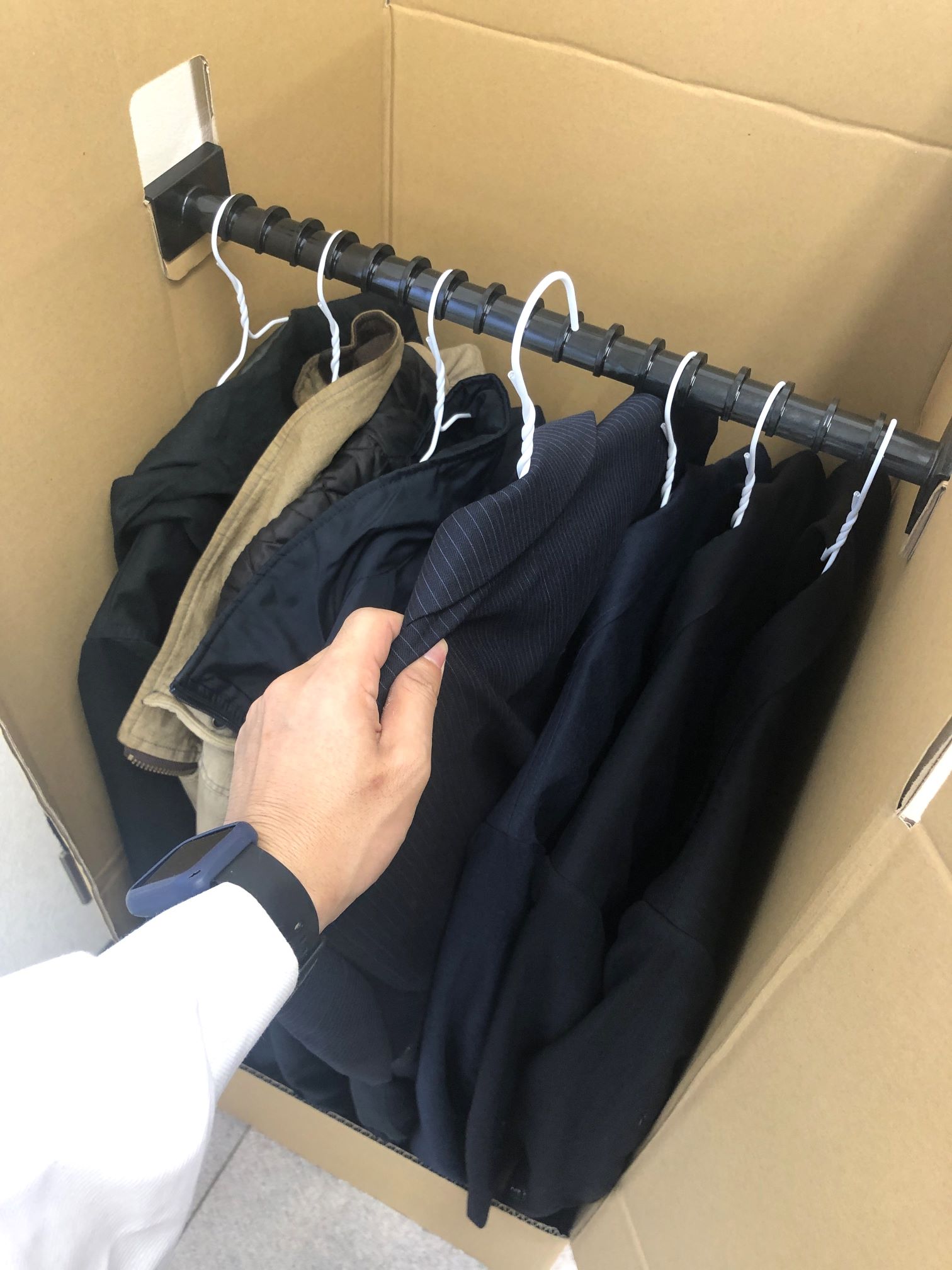 大切な衣類をハンガーにかけたまま収納・運搬が可能な、ダンボール製ハンガーボックスです。