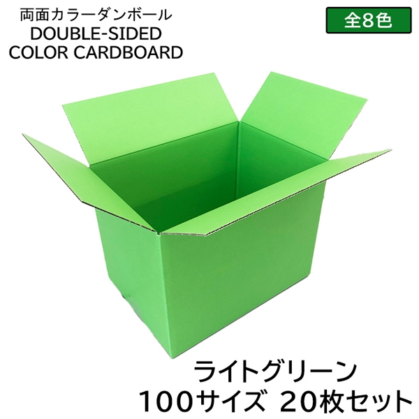 100サイズのカラーダンボールは「赤・ピンク・黄・オレンジ・黄緑・水色・黒・白」の合計8色で展開。