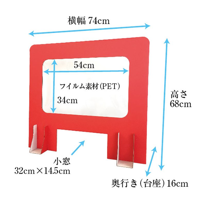 タチバナ産業 受付用パーテーション 卓上間仕切り 受付用マドワクダナ (Madowaku-Dana) 2枚入り1ケース 簡単設置 軽量日本製 幅74cm 高さ68cm レッド
