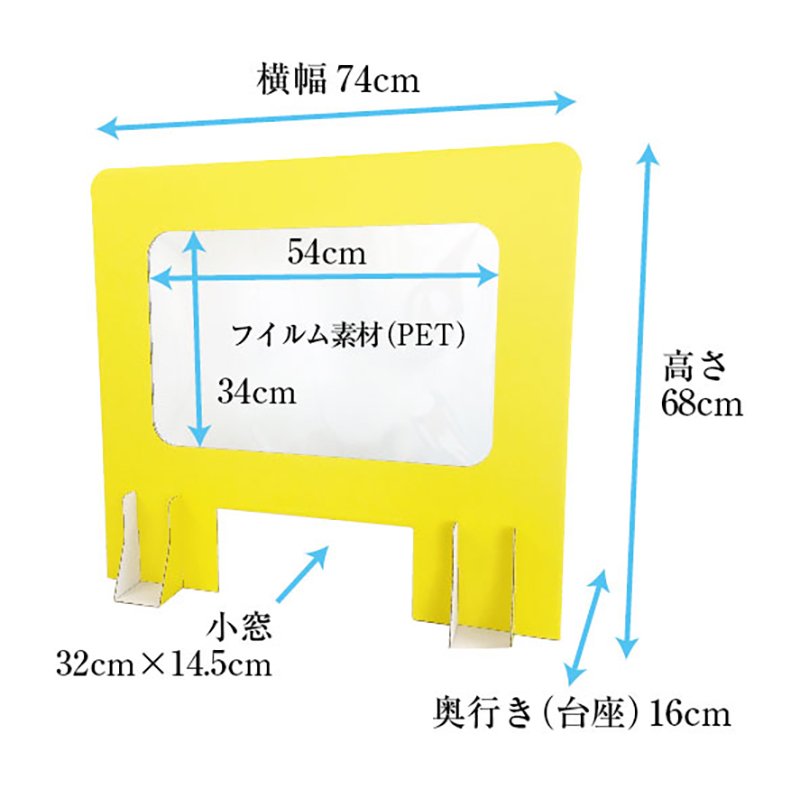タチバナ産業 受付用パーテーション 卓上間仕切り 受付用マドワクダナ (Madowaku-Dana) 2枚入り1ケース 簡単設置 軽量日本製 幅74cm 高さ68cm イエロー
