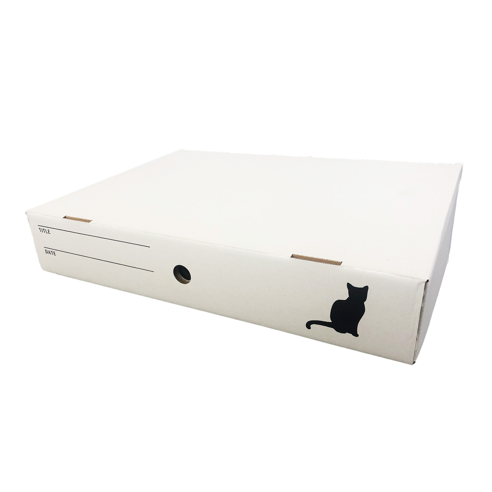 箱の正面にはワンポイントで猫のシルエットがデザインされています。