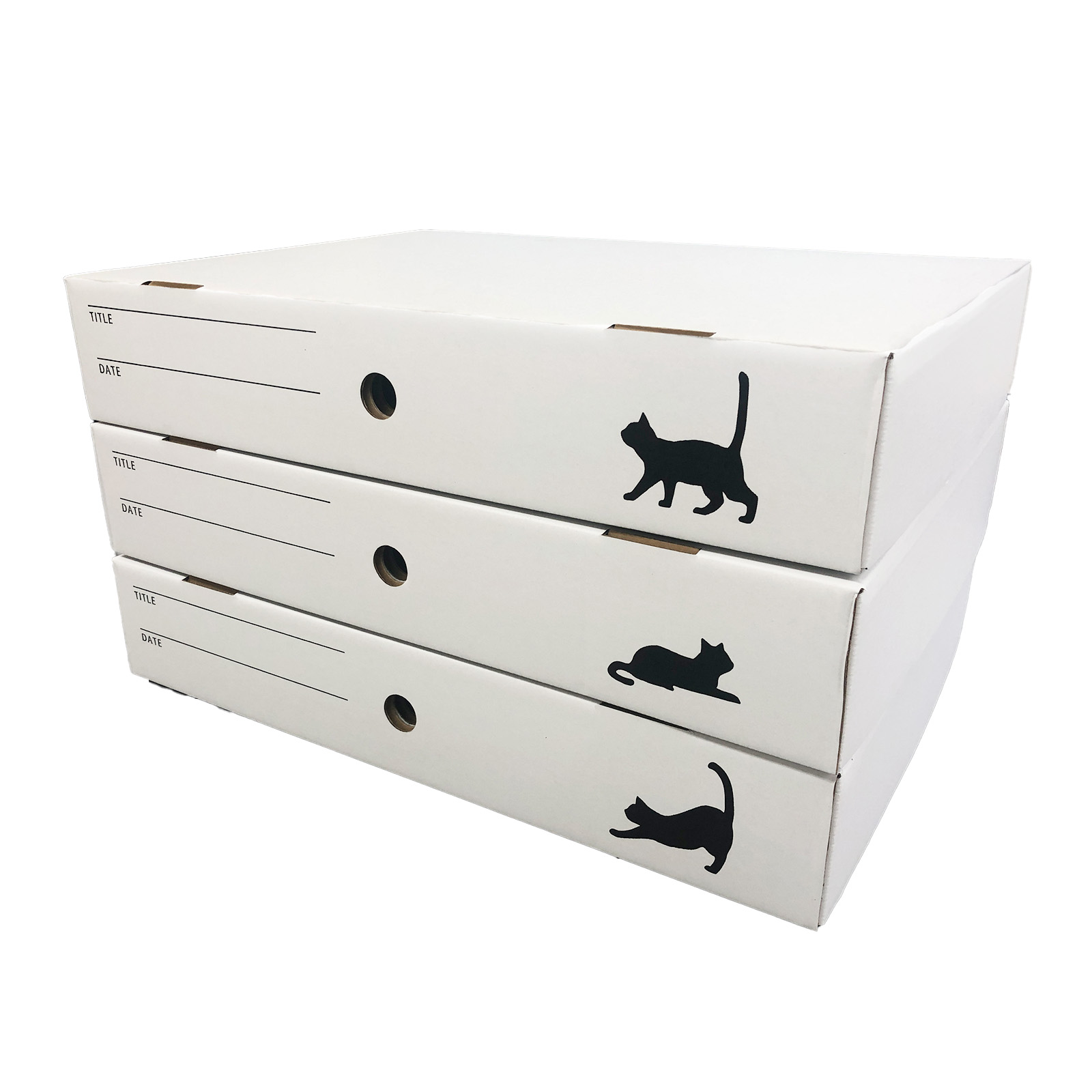 箱の正面にはワンポイントで猫のシルエットがデザインされています。