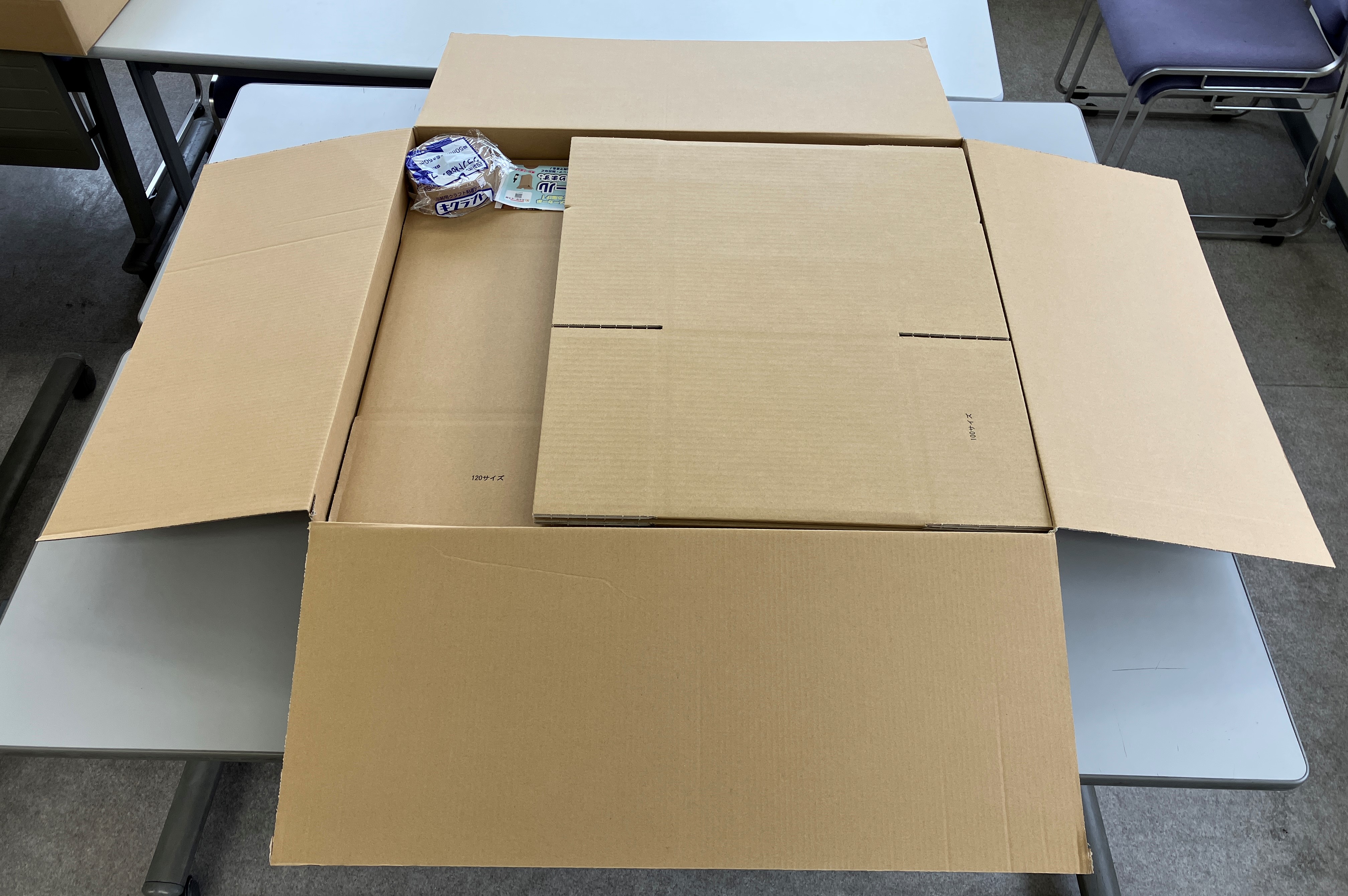- 衣類などがたっぷり入る大きさの120サイズダンボールが10枚と、