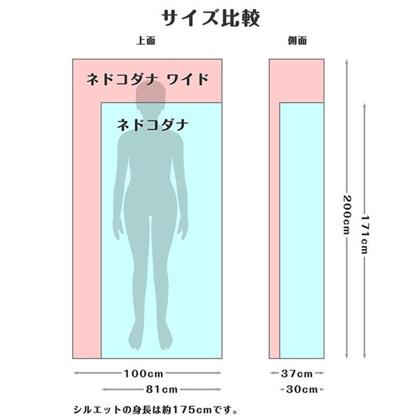 使用時はゆったりワイドサイズ(200cm×100cm)で、大柄な男性でも足を伸ばして快適にお休みいただけます。