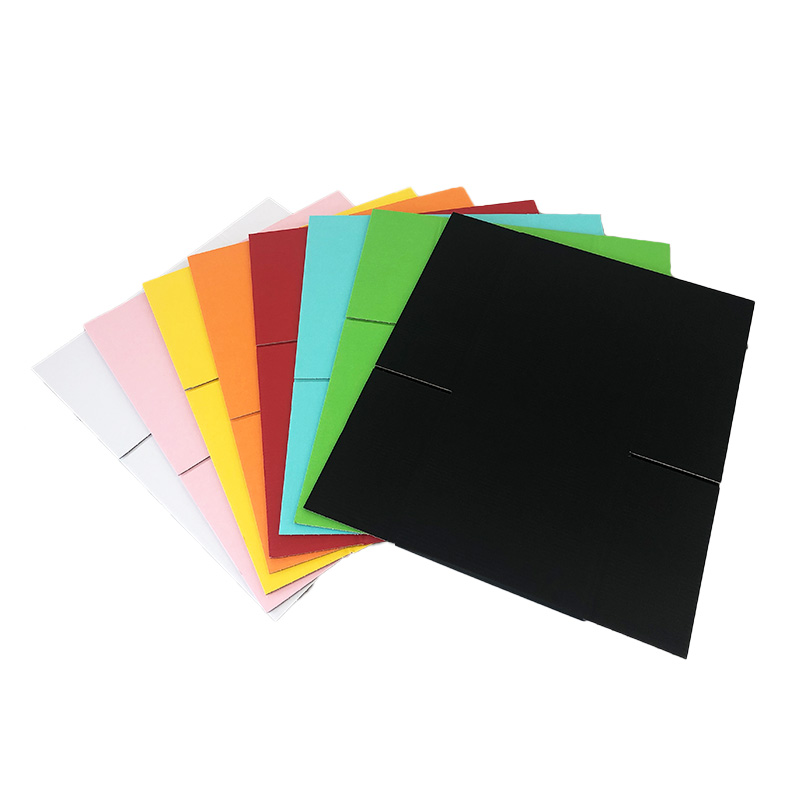 100サイズのカラーダンボールは「赤・ピンク・黄・オレンジ・黄緑・水色・黒・白」の合計8色で展開。