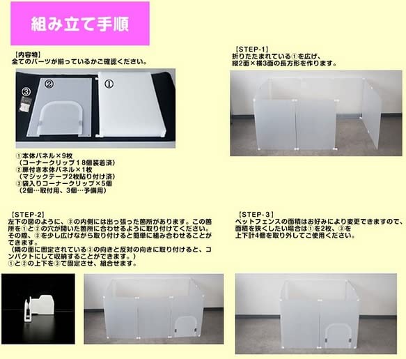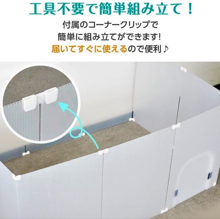 透けにくい半透明のプラスチック段ボール製のため、ペットフェンスの他に、ペットケージの目隠しや
