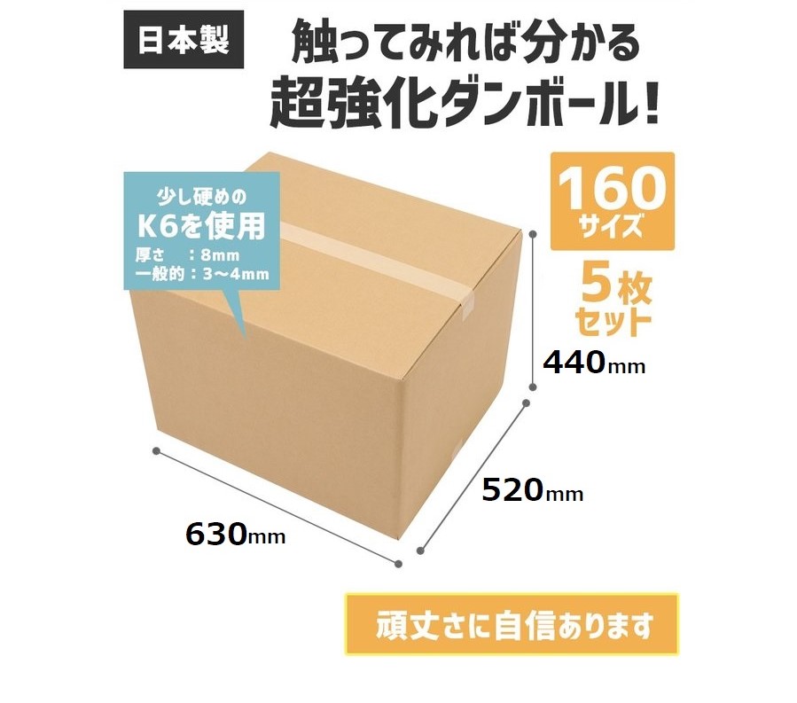その硬い丈夫なダンボールを更に2枚重ね!ダブル構造の厚さ8mm!(通常は4mm)