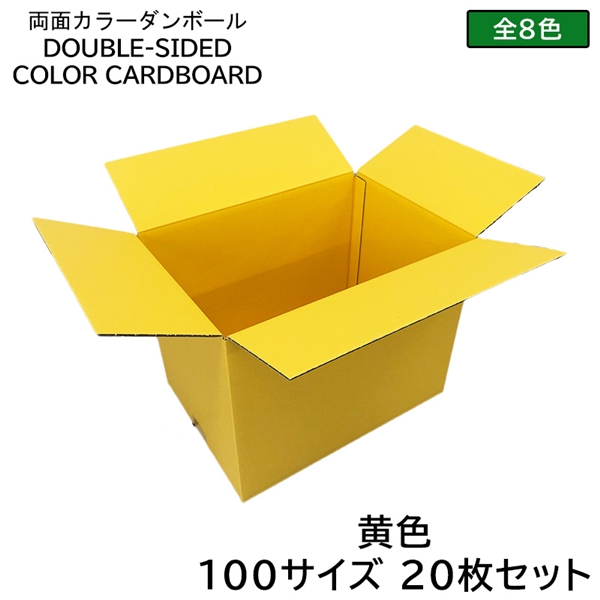 100サイズのカラーダンボールは「赤・ピンク・黄・オレンジ・黄緑・水色・黒・白」の合計8色で展開。
