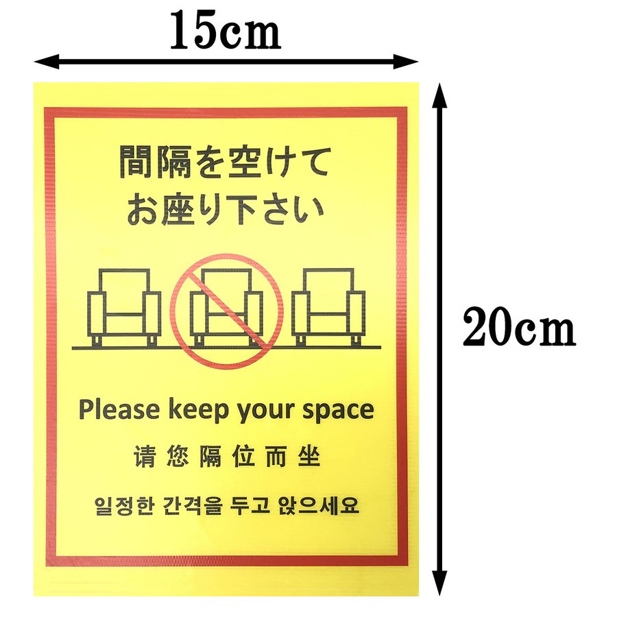 ソファー、椅子、テーブル等のお店やイベント会場で着席の間隔を容易に示すことが出来ます。