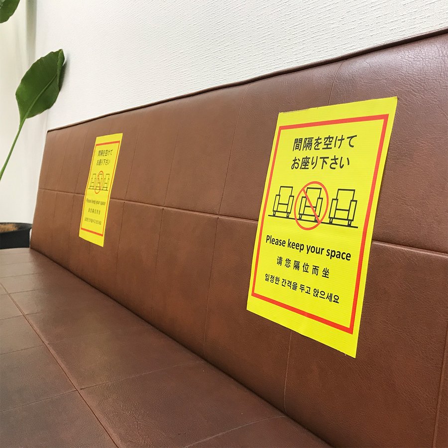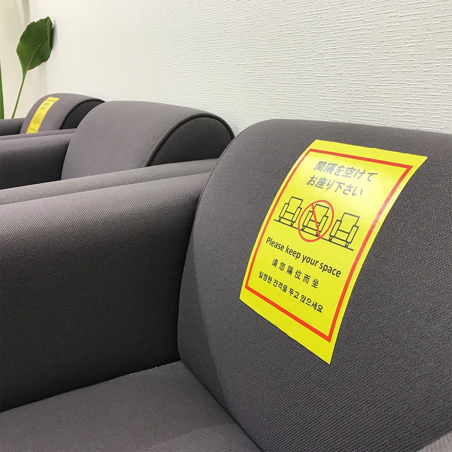 ソファー、椅子、テーブル等のお店やイベント会場で着席の間隔を容易に示すことが出来ます。