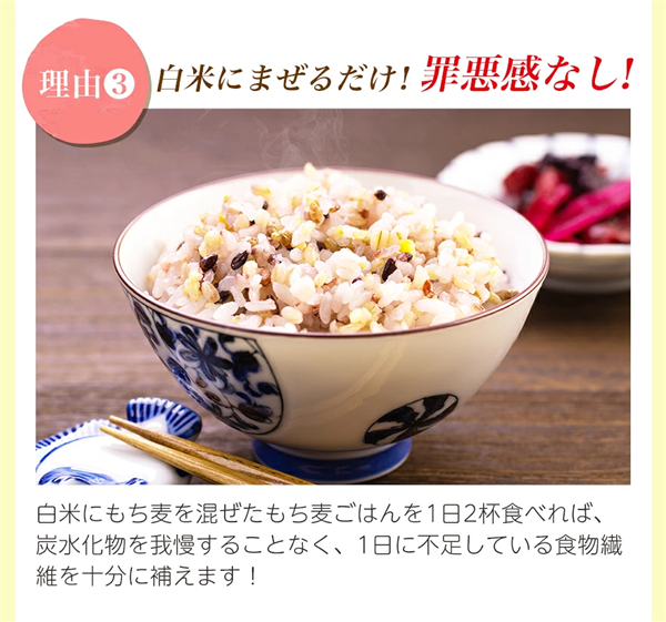 1日2杯のもち麦ごはんで、炭水化物を我慢せずにしっかりと食物繊維を補えます。