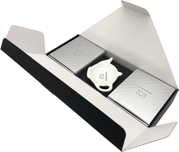 開ける前から期待をされる最高のプレゼントになり、中の銀の内箱と白色のティーバッグレストで