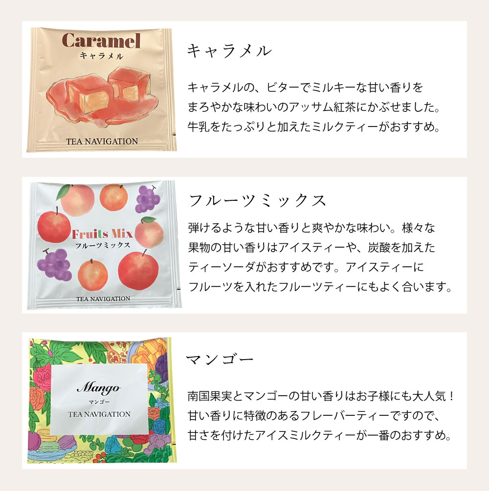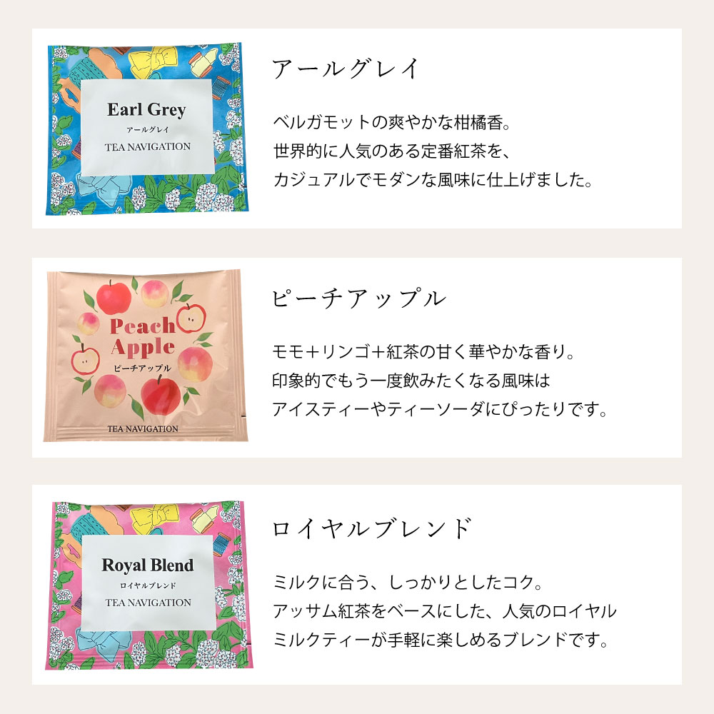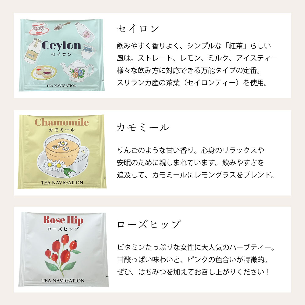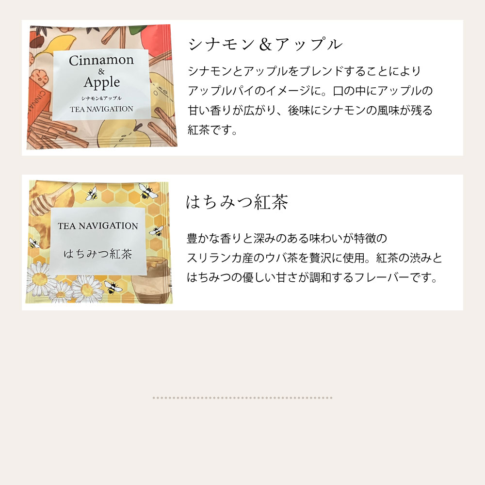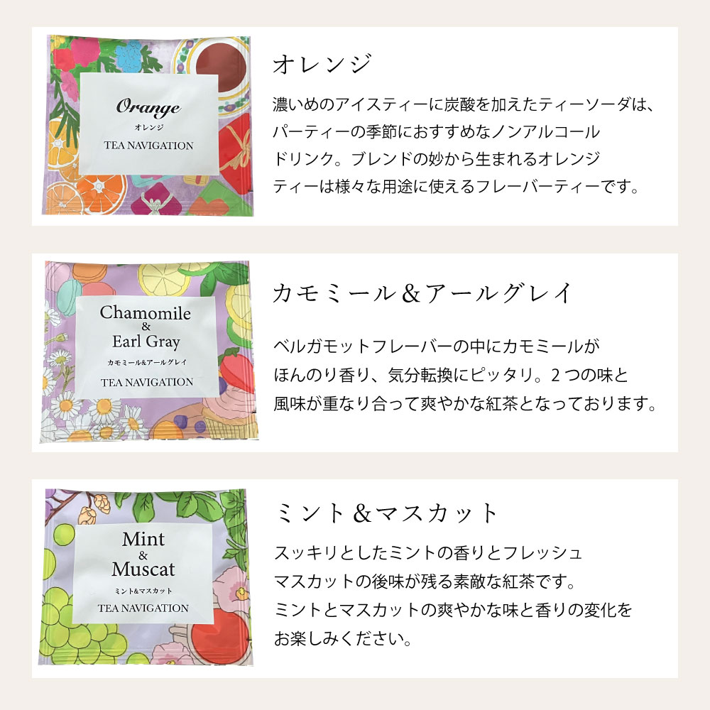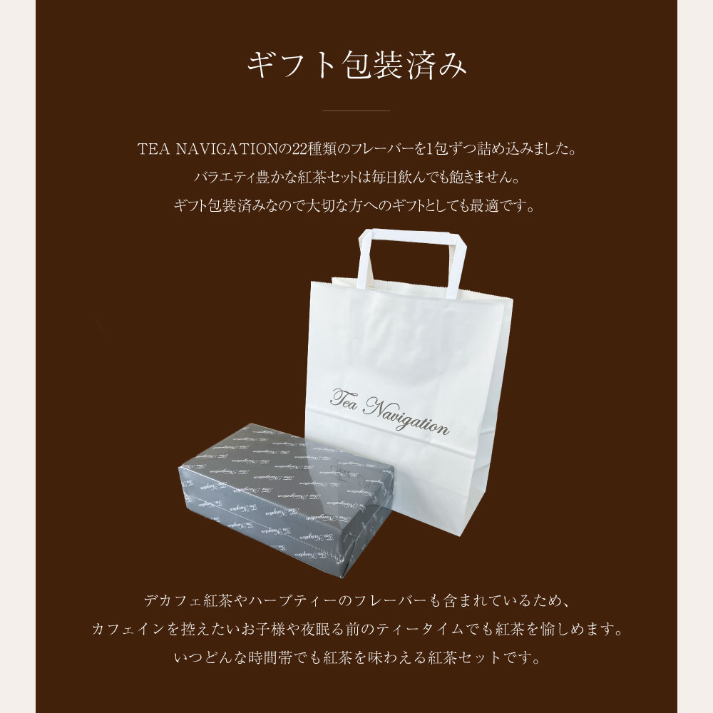 バラエティーセットは、TEA NAVIGATIONの人気フレーバーを1包ずつ詰め込み22包の紅茶セットにしました。
