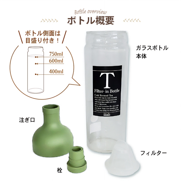 商品仕様:ナイロンメッシュ三角ティーバッグ(糸タグ無) 茶葉5gx5ティーバッグ入り 香りを逃さず、保存に便利なチャック付き袋 HARIO750ml スモーキーグリーンボトル付き 賞味期限:各個包装に記載