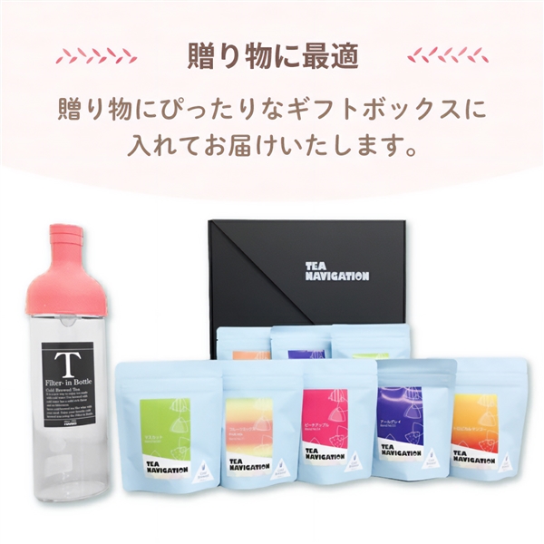 商品仕様:ナイロンメッシュ三角ティーバッグ(糸タグ無) 茶葉5gx5ティーバッグ入り 香りを逃さず、保存に便利なチャック付き袋 HARIO750ml スモーキーピンクボトル付き 賞味期限:各個包装に記載