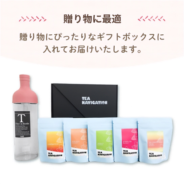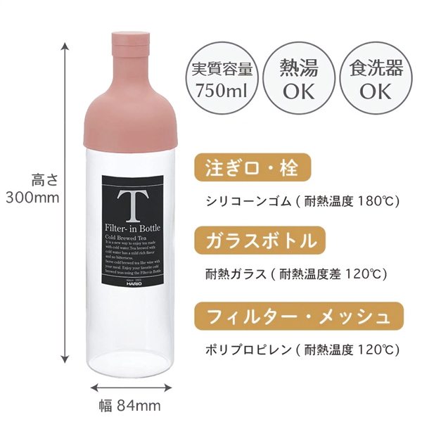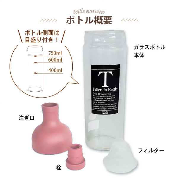 商品仕様:ナイロンメッシュ三角ティーバッグ(糸タグ無) 茶葉5gx5ティーバッグ入り 香りを逃さず、保存に便利なチャック付き袋 HARIO750ml スモーキーピンクボトル付き 賞味期限:各個包装に記載